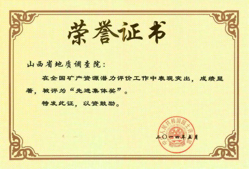 研究院始終堅(jiān)持“質(zhì)量第一,誠(chéng)信為本,勇于創(chuàng)新”的宗旨,原始資料及成果報(bào)告優(yōu)良率100%,優(yōu)秀率達(dá)75%。完成的西藏1∶25萬土則崗日幅、山西1∶25萬忻州市幅區(qū)域地質(zhì)調(diào)查獲國(guó)土資源部科學(xué)技術(shù)二等獎(jiǎng);在全國(guó)優(yōu)秀圖幅展評(píng)中1∶25萬忻州市幅獲一等獎(jiǎng),1∶25萬托和平錯(cuò)、應(yīng)縣幅及1∶5萬御棗口幅獲二等獎(jiǎng),1∶25萬岢嵐縣幅、臨汾市幅、侯馬市幅等6個(gè)項(xiàng)目獲三等獎(jiǎng),其中1∶25萬、應(yīng)縣幅、岢嵐縣幅、侯馬市幅獲中國(guó)地質(zhì)調(diào)查成果二等獎(jiǎng)。